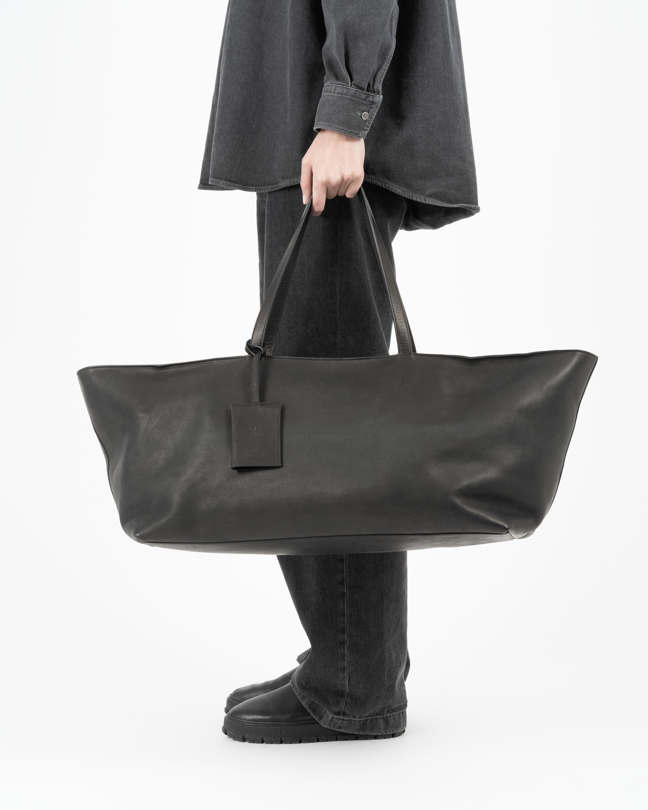Die Tasche von Ayzit Bostan besteht wie der Entwurf von Marcel Breuer ebenfalls nur aus zwei Materialien. Mit einem breiten Boden, auf dem ein Laptop, Magazine oder Notizbücher Platz finden, und ausgestattet mit Innenfächern und einem separaten Etui, um Kabel, Mäuse, Schreibgeräte etc. aufzunehmen.