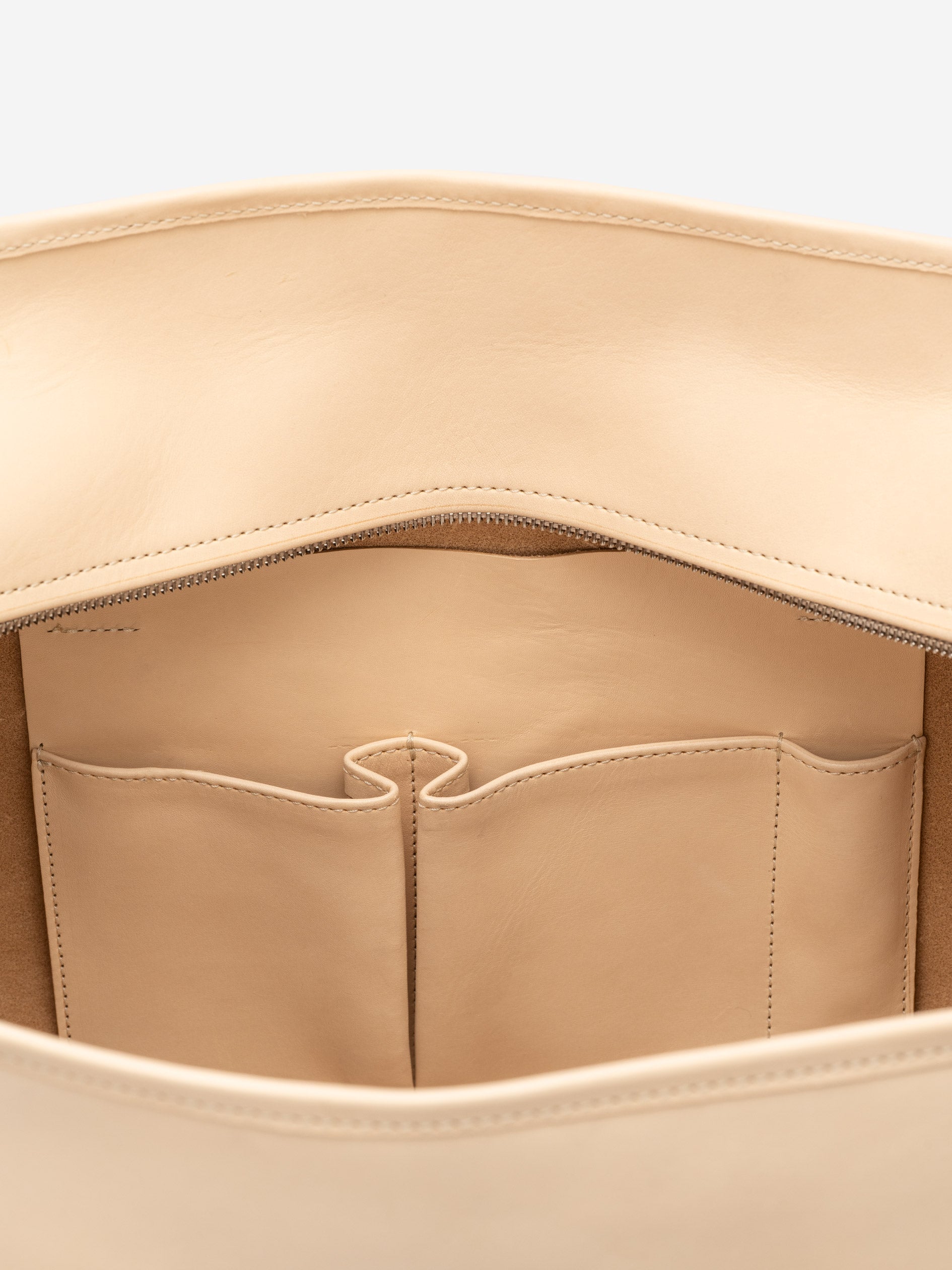Die ausgewogene Riemenlänge sorgt dafür, dass PB 1 in jedem Zustand komfortabel zu tragen ist. Material und Handwerk Gefertigt aus 1,1 m² weichem, pflanzlich gegerbtem Leder, offenbart PB 1 im Laufe der Zeit die natürliche Schönheit des Materials. Wir haben bewusst auf ein Innenfutter verzichtet, um Gewicht zu sparen. Die Rückseite des Leders ist speziell behandelt, um eine schöne, glatte Oberfläche zu bewahren. Eine schützende Paspelierung entlang der Kanten verleiht Struktur und sorgt für Langlebigkeit.