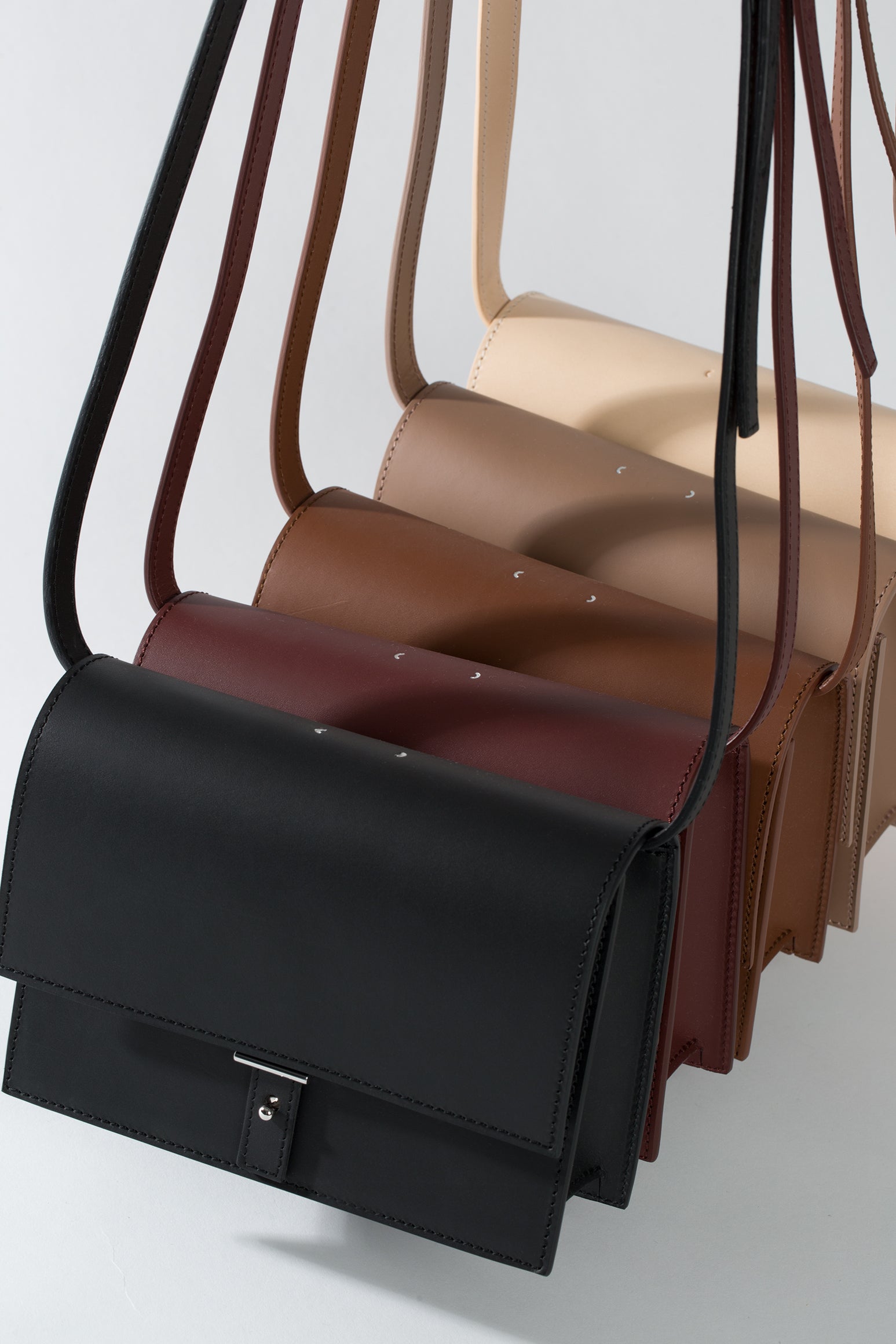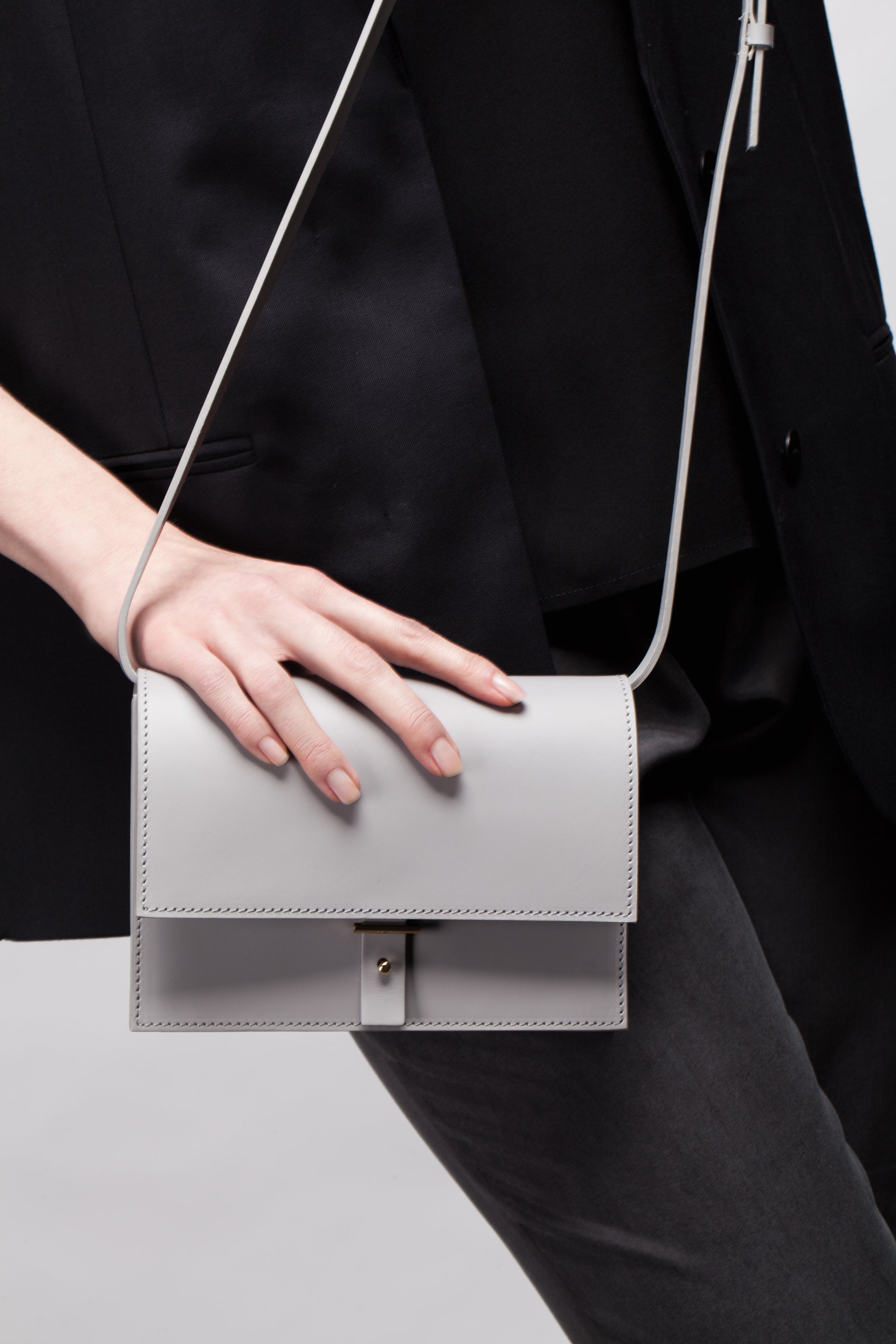 AB 10, the tenth model designed by artist and designer Ayzit Bostan from Munich for the collection. A very compact model for the essentials. The shoulder strap is long and adjustable, allowing the bag to be worn crossbody over a coat or shorter against the body. We first introduced the bag in 2014 and have minimally refined it 10 years later. It is now slightly wider and deeper.