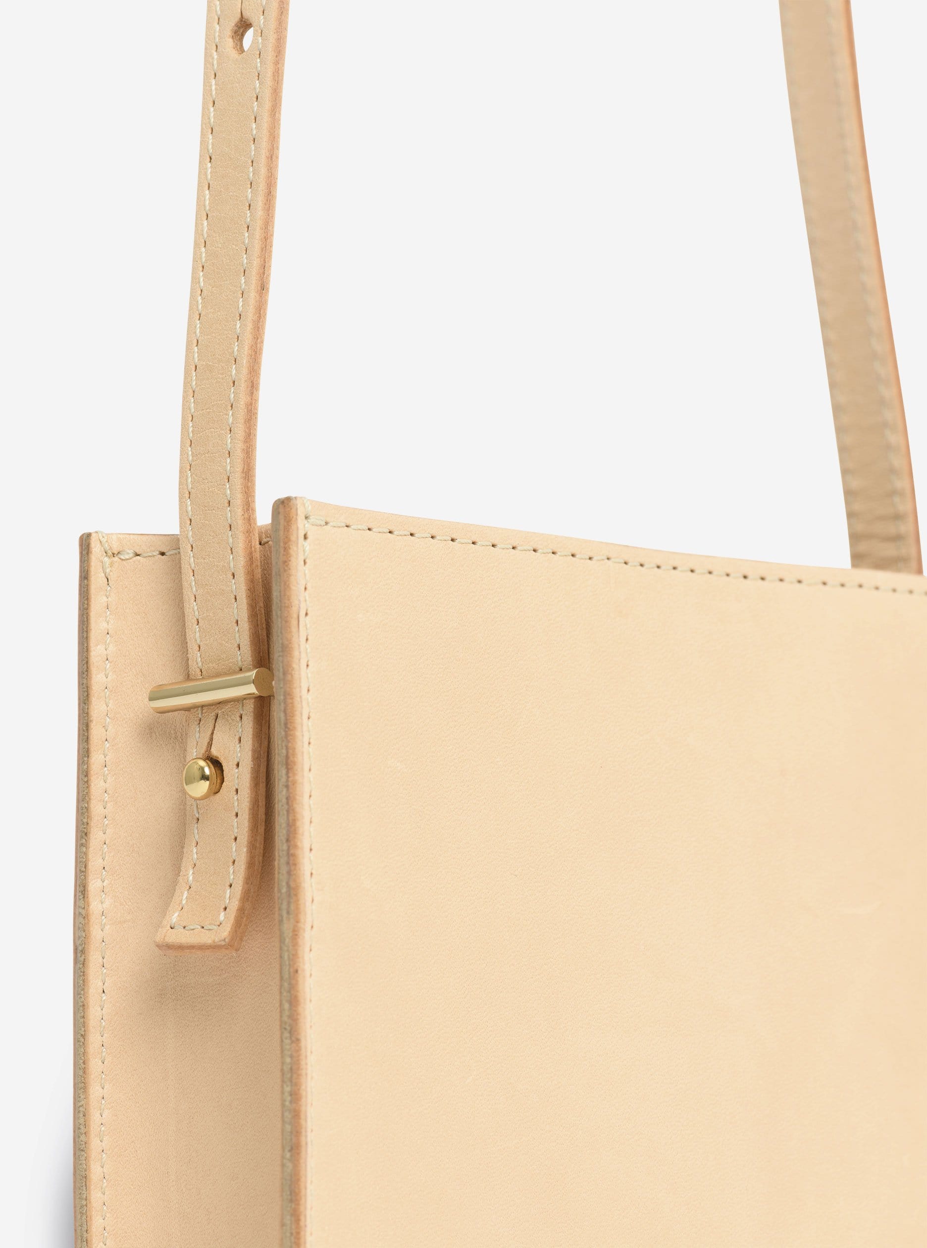 AB 105 is inspired by our first model AB 1, designed by the designer and artist Ayzit Bostan. A smaller version with a main compartment and a slip pocket for the most important things like mobile phone, card case and pen. The strap is adjustable. It has taken some time to bring this style to life but we are happy that it has become part of the family.