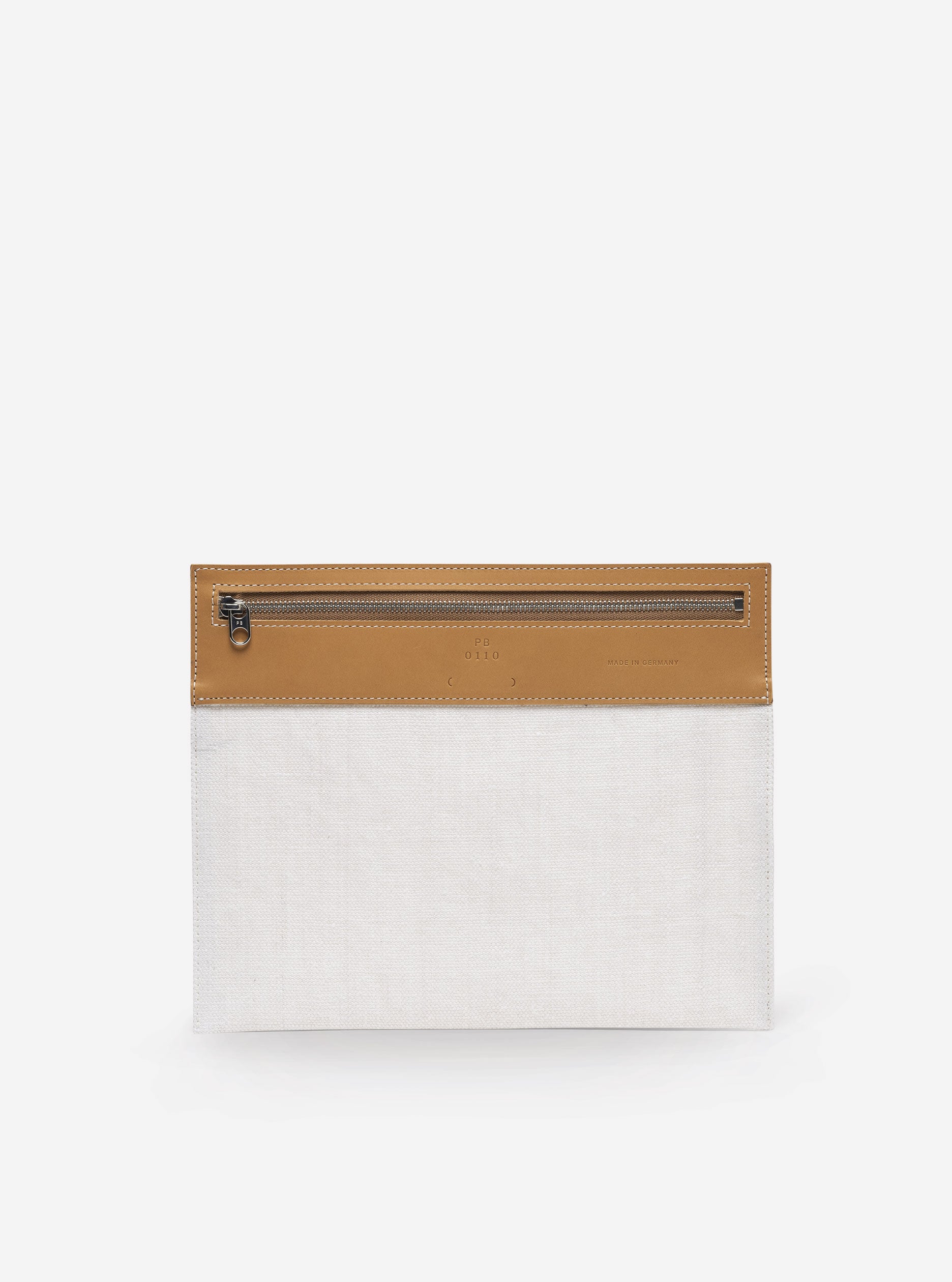 AB 126 is a pouch made of natural, soft Italian linen and vegetable-tanned leather. It is worked flat so that the linen conforms to the contents. The inside of the linen is coated and can be easily cleaned or the pouch can be washed completely in the care wash program. Many years ago we produced a small series of the model without selling it online. Everyone who uses it on a daily basis is so happy that we have added it to the collection.