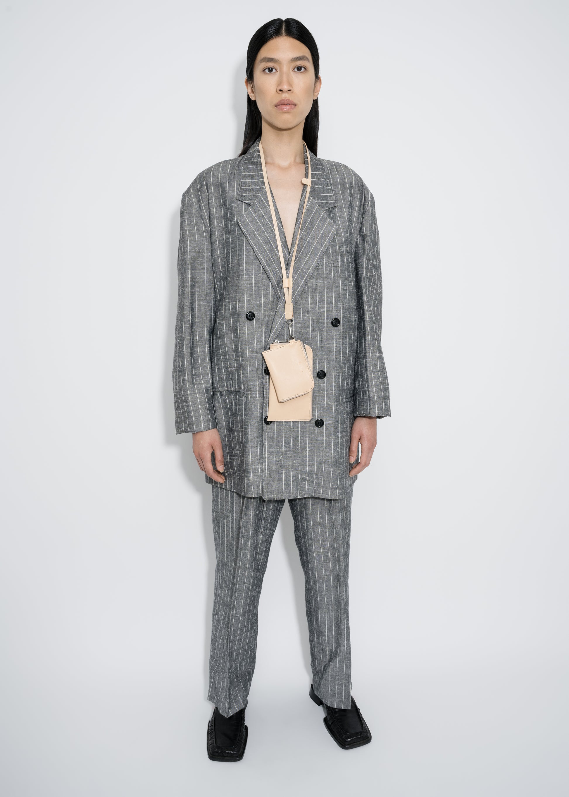 One inspiration for the ensemble of products that can be worn very close to the body is certainly the realisation that the mobile phone is moving ever closer to us in many respects. One could get the impression that it is becoming a new limb. If this is the case, we would like to offer a beautiful, restrained form that also integrates a wallet.