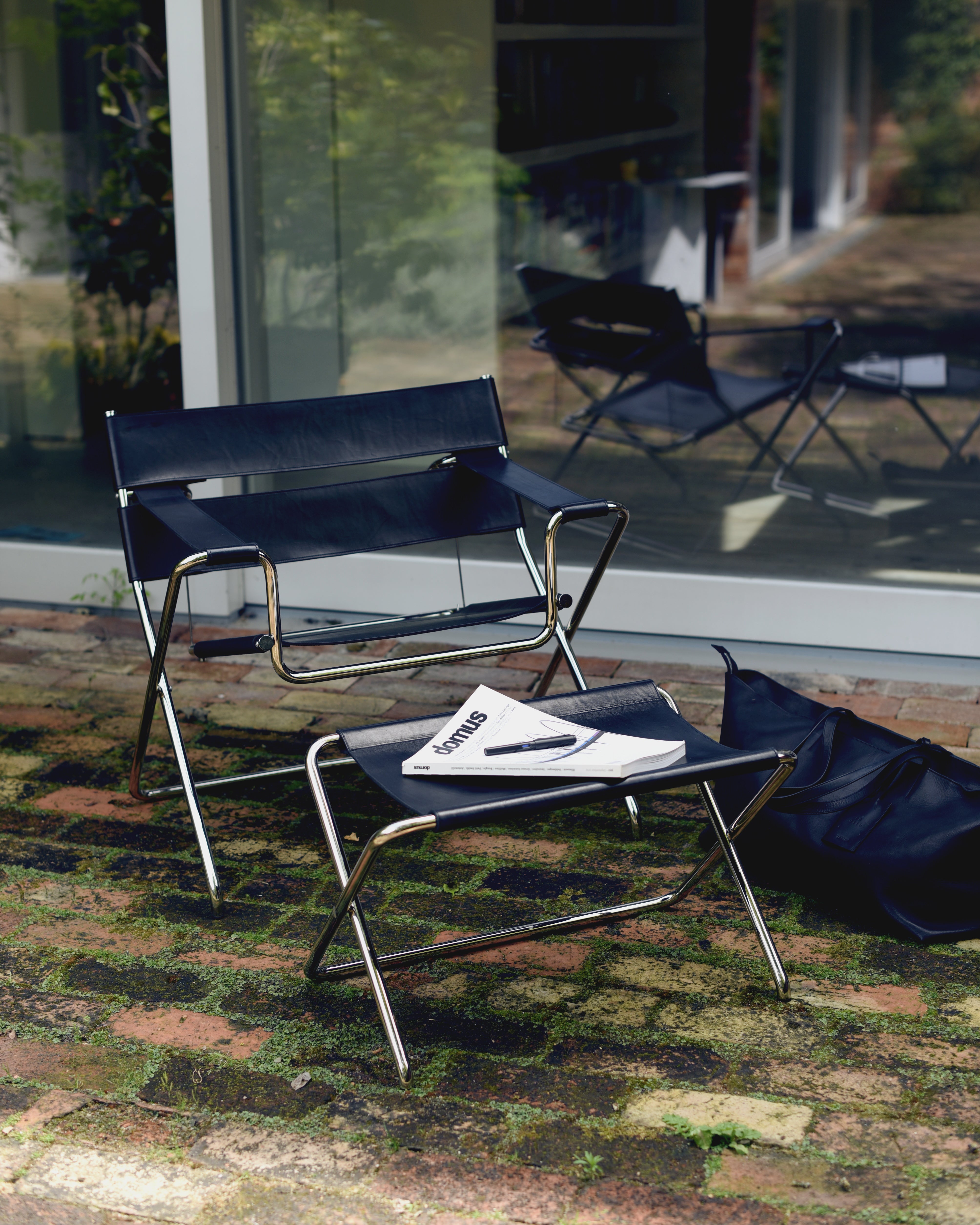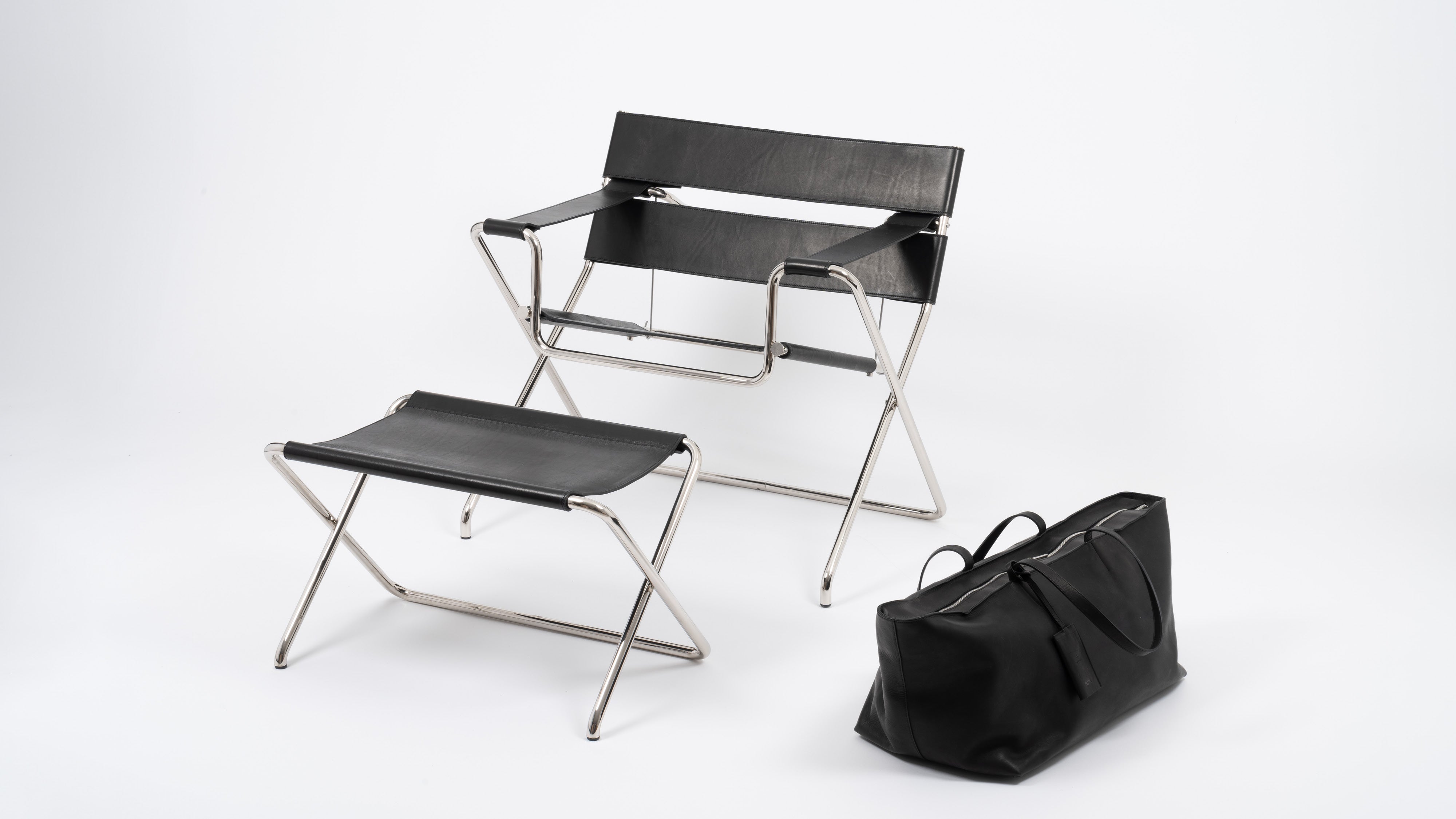 Der Arbeitstitel der Zusammenarbeit zwischen der deutschen Möbelmarke TECTA und PB 0110 war ‚Home Work‘. Uns leitete der Gedanke, wie wir heute zu Hause arbeiten und wie sich die Orte und Arbeitssituationen über das letzte Jahrzehnt signifikant verändert haben. Ein Ensemble aus drei Objekten ist entstanden: Der zusammenklappbare Stahlrohr-Klubsessel D4 von Marcel Breuer aus dem Jahr 1927, bezogen mit unserem Leder, ein neuer mobiler Hocker und eine Beistelltasche, die wie ein Objekt im Raum steht und als Möbel oder Reisetasche von Raum zu Raum oder längere Reisen funktionieren kann. Für das Design der neuen Elemente habe ich die Münchner Künstlerin und Designerin Ayzit Bostan eingeladen.