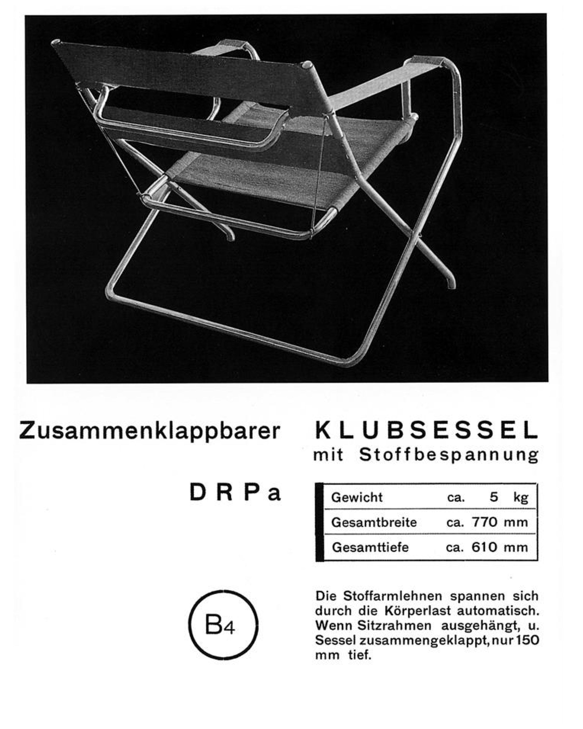 Our collaboration is based on shared values, a clear ethos and an unwavering commitment to quality. A sense of beauty and functionality defines many of Marcel Breuer's designs, especially the D4 (formerly B4). The foldable tubular steel club chair with strap upholstery, designed in 1926/27, was originally marketed for ships, sports fields, and gardens. Light, springy, and modern, it continues to embody functional design to this day. In the 1970s, Axel Bruchhäuser, the then-owner of Tecta, rediscovered the design and convinced Breuer to bring it back into production.