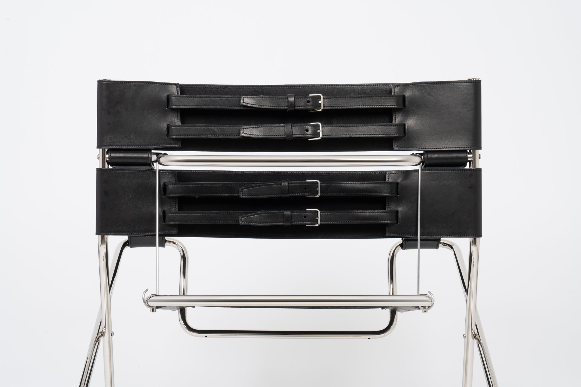 The D4 represents the ultimate reduction to essentials: foldable, easy to store, and transportable. With its economical use of tubular steel and the elimination of side straps, it is not only more material-efficient but also offers enhanced seating comfort. In 1980, the D4 was added to the permanent collection of the MoMA in New York.