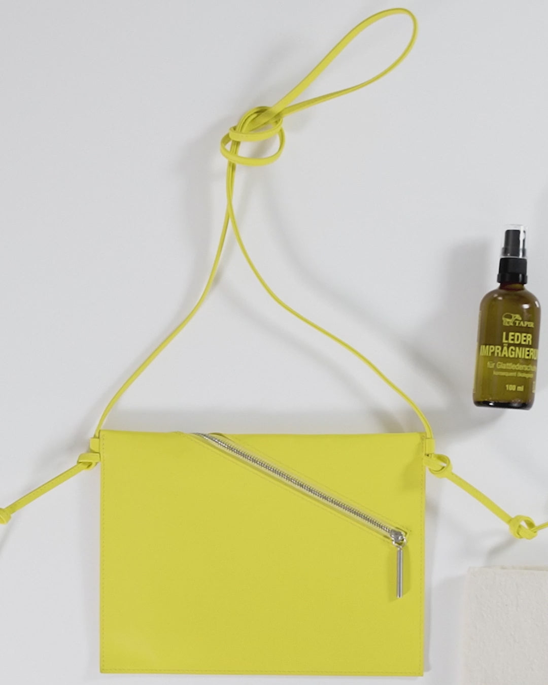 The Tapir Leather Waterproofing protects our leather bags and accessories from water damage. This product is highly repellent to water and has a light cleaning effect.This formula works best with our coloured leather items. For our natural leather goods, we recommend using the Tapir Leather Fat instead. Made in Germany from lanolin, jojoba oil, vegetable stearin, orange oil, ammonia, and water. This product comes in a 100ml glass bottle with pump.